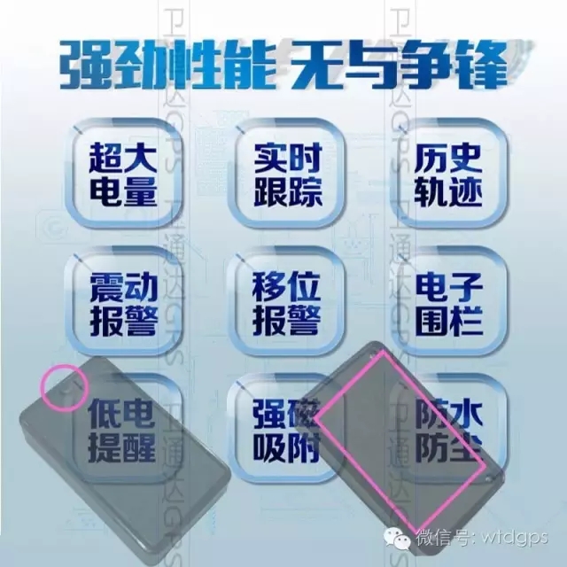 GPS/LBS定位 业内最强性磁铁 内置GPS天线 快速搜星 实时跟踪 目标方向 行走路线记录 中文数据报表 远程监听 越界 入界报警 手机APP实时路况显示跟踪定位。