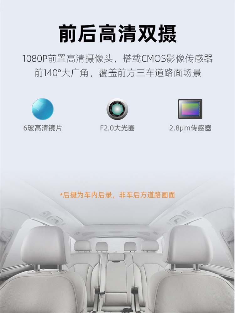 l 对内摄像头具有红外、录音功能,可清晰拍摄到车内司机及前后排乘客,保障司机、乘客安全;