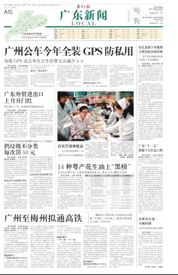 昨天上午,广州市财政局召开新春媒体座谈会,市财政局局长张杰明透露,公车加装GPS定位系统在广州财政局、城管及黄埔区等单位试点后,对防止“公车私用”的效果明显,其中黄埔区公车经费下降了24%。“公车加装GPS,今年会在全市党政机关推广。”