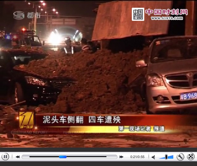 泥头车超速侧翻 四车遭殃 城市版生死时速