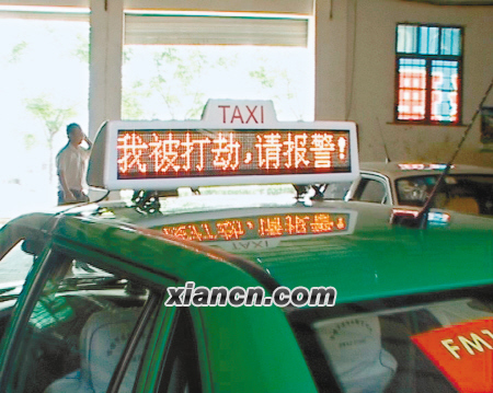 司机遭遇歹徒时,只要按下方向盘下的报警键,车辆位置即可被准确定位,车顶的LED灯也会闪现“我被打劫,请报警!”字样。记者昨获悉,宝鸡1800辆出租车已加装了这种具备报警和定位功能的GPS援救系统。