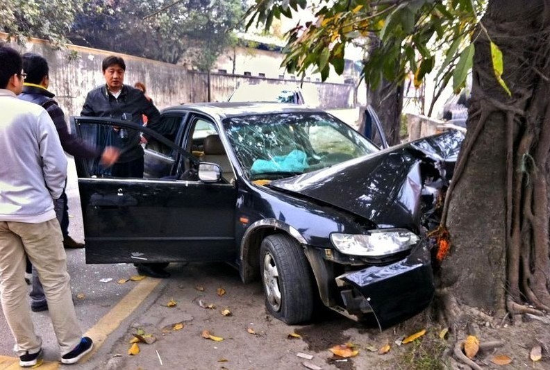 嫌犯驾车逃跑,慌不择路撞上大树。