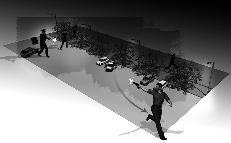 当疑犯正要把赃车开走时,早已埋伏在附近的民警立即行动展开抓捕。两名疑犯见势立即奔逃,民警展开追截。其中一名嫌疑人见民警紧追不舍,拔出手枪朝追捕民警射击。在鸣枪警告无效后,追捕民警随即向嫌疑人腿部开枪。两名嫌疑人李×芳、黄×佳被当场击伤,中枪后,他们又跑了30多米,终于束手就擒。记者在警方后来提供的视频中听到当时警匪之间大约开了十余枪。