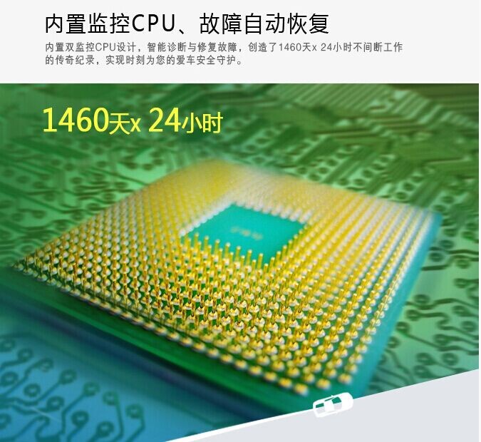 7、内置的CPU芯片自我诊断和修复故障功能,使车辆24小时全天候实时监控,守护你的车辆安全。