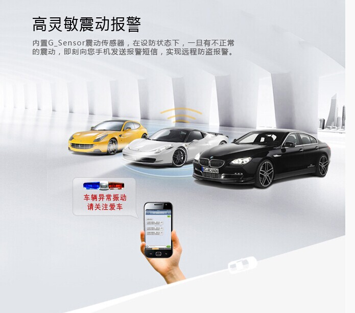 10、车辆在受到震动的情况下,如、拖车、砸玻璃、碰撞、偷轮胎设备就会通过手机第一时间通知到车主。