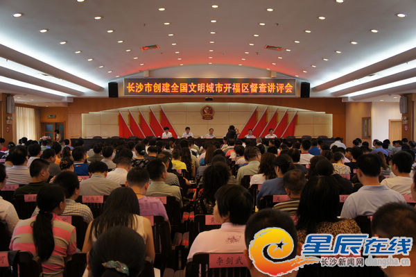 长沙市创建全国文明城市开福区督查讲评会现场。