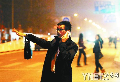 一见出租众人伸手的景象在北京随处可见摄影/本报记者 郝羿